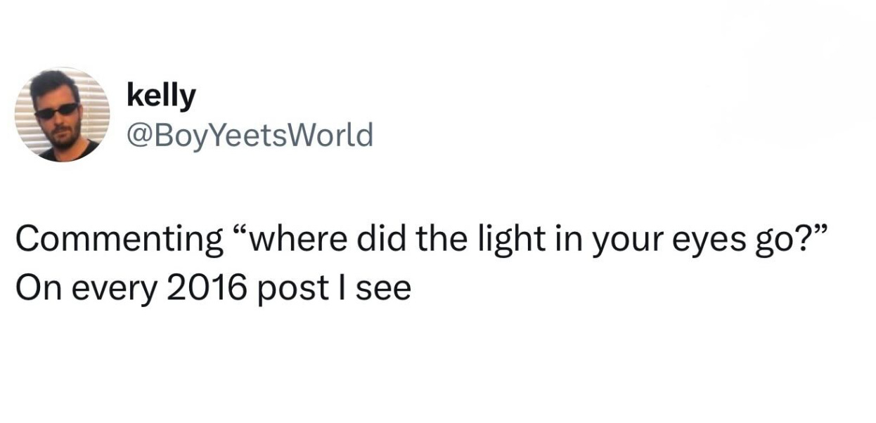 I didn’t even notice how far a departure it was until one day I was 31, and the internet was asserting that 2016 is back(!!), and I was accosted by a version of myself that I no longer recognized. Someone who’d been caught up in the partying and the showmanship and the shock value.