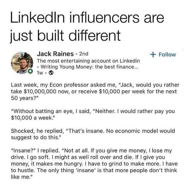 LinkedIn influencers cannot help themselves.