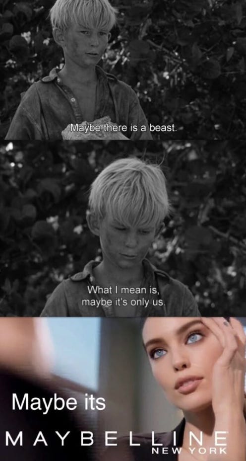 I will never stop quoting classics in these whack-ass newsletters… Someone has to appreciate it! I am bridging timeless texts to modern woes! My life’s purpose is to create a place on the internet for memes like these to thrive: