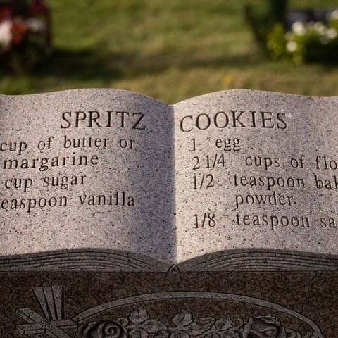This woman visits cemeteries and makes the recipes left on gravestones. In memori-YUM!