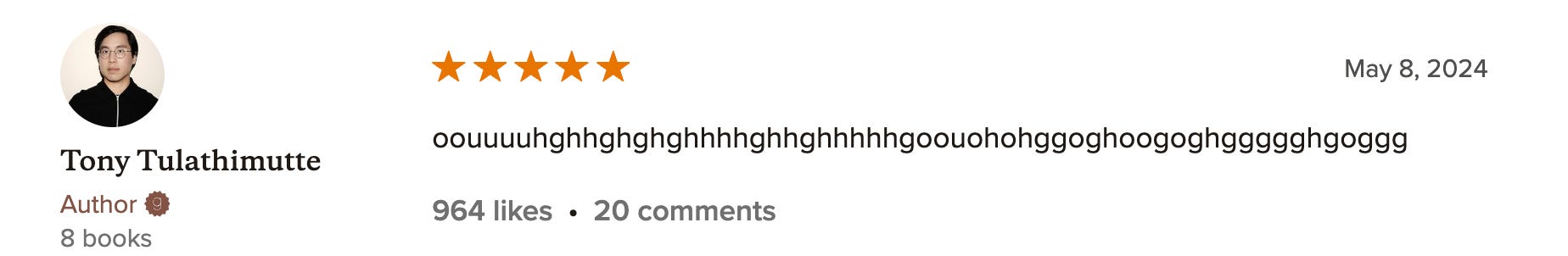 Also, he left himself this 5-star rating, and I love that: